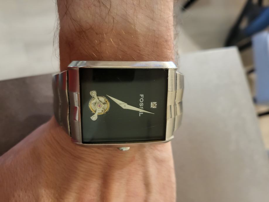 Prodajem sat Fossil twist arkitekt, safirno staklo, dupli mehanizam , quartz i automatic, open heart, marker na 12ici dijamant, metalni remen, ispravan, stanje 9/10, vidljivo na slikama, potrebno poliranje.