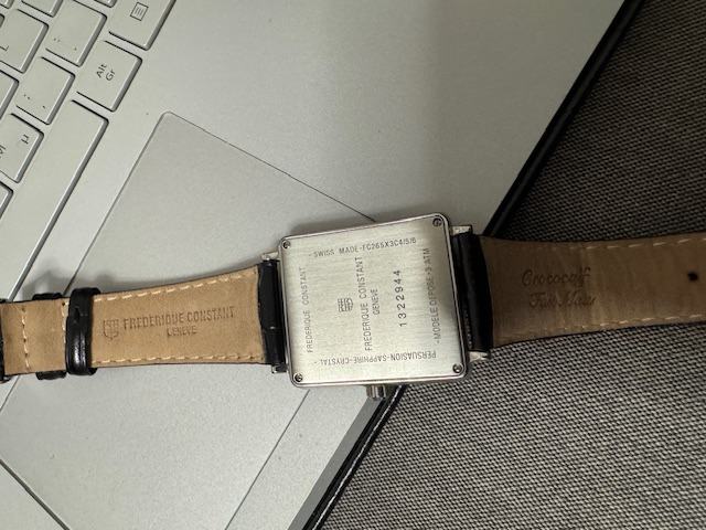 Caseback:Stainless Steel, solid with Frederique Constant engravings and serial number