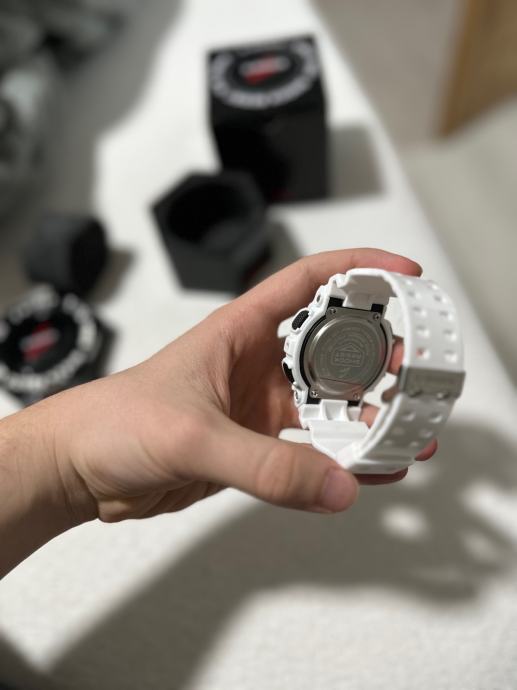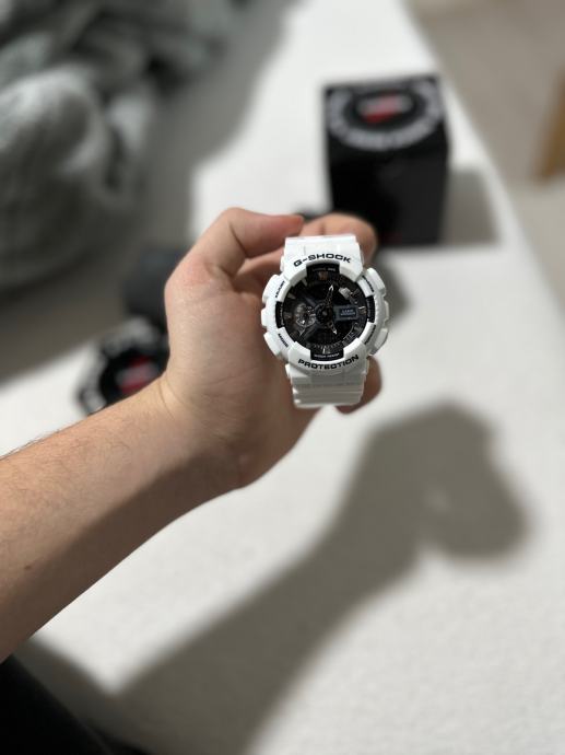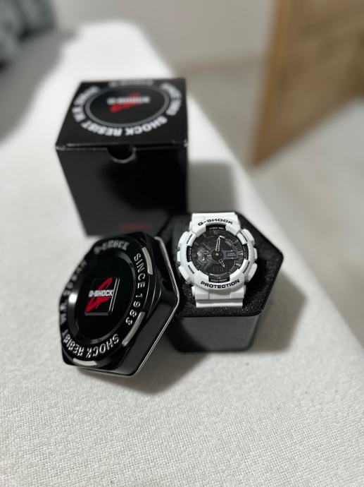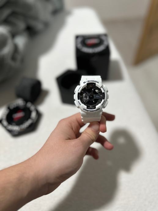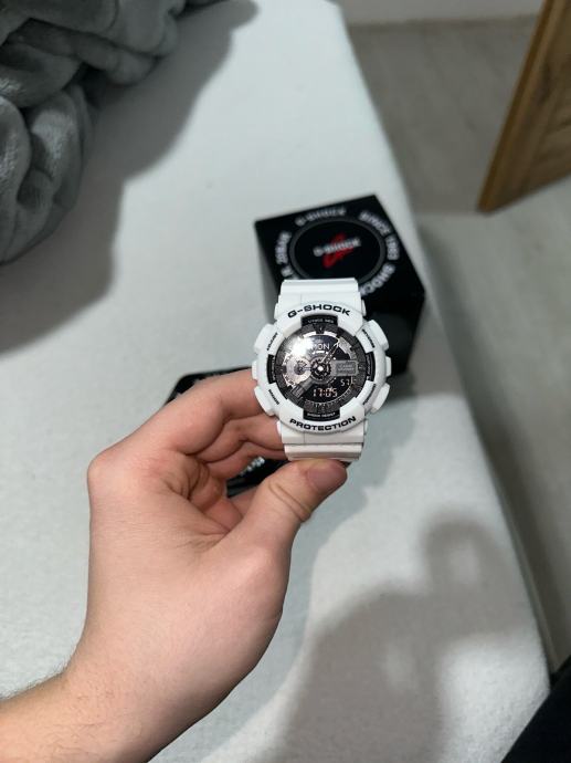 Prodajem malo nošeni Casio G-Shock GA110 u odličnom stanju. Sat dolazi u bijeloj boji s crnim detaljima, savršen za sportske i svakodnevne aktivnosti. Iznimno izdržljiv model s prepoznatljivim G-Shock dizajnom koji kombinira funkcionalnost i stil.