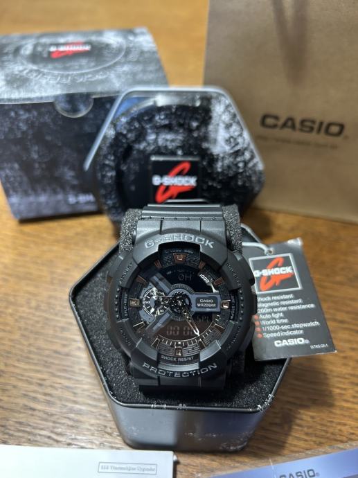 Prodajem Casio G-Shock sat u crnoj boji, potpuno nov s etiketom. Dolazi u originalnom pakiranju s kutijom, međunarodnom jamstvenom karticom, Casio uputstvom i svim pratećim dokumentima. Sat ima klasičan G-Shock dizajn s izdržljivim polimerskim kućištem i remenom. Otporan na udarce i prilagođen za svakodnevno nošenje.