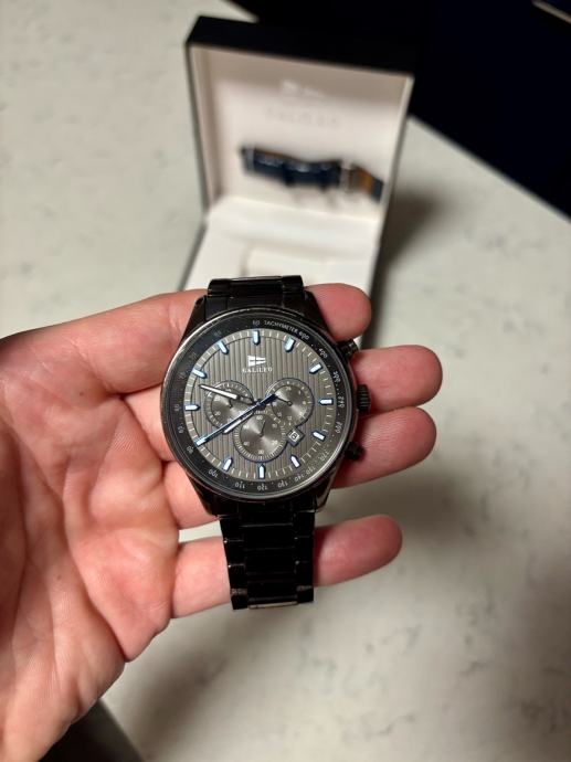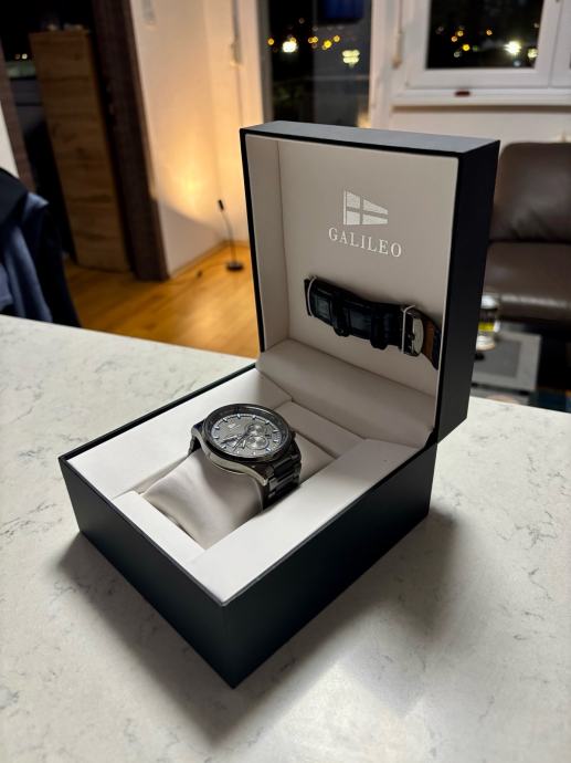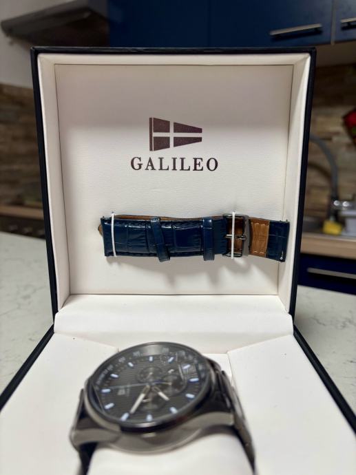 Lijep crni muski sat, ima u kompletu i plavi kozni remen.