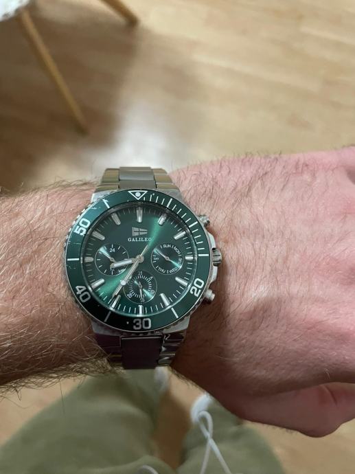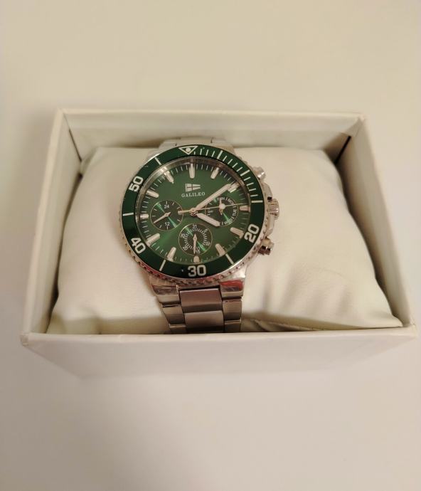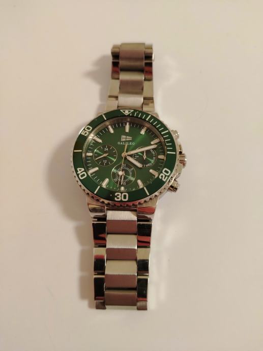 ✅ Muški sat Galileo — privlačan zeleni brojčanik, čelična narukvica, brojčanik u krono stilu.