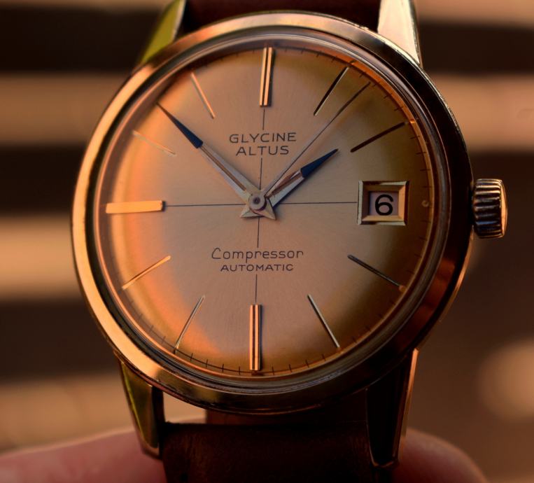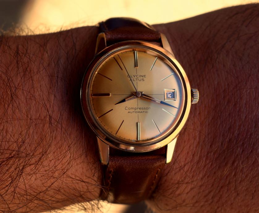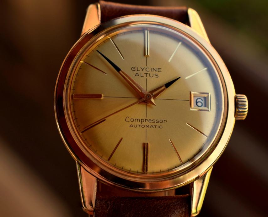 Ljepota, posebnost, kvalitet su samo neke od karakteristika koje predstavlja izuzetan sat kao što je „ Glycine Incursore“ -„ Officer“ … prije predstavljanja ovog nevjerovatnog sata, naveo bi nešto o samom proizvođaču kao i o konkretnom modelu… “ Glycine” je osnovan 1914 u Biennu, Švicarskoj od strane Eugene Meylana , inženjera satova , perfekcioneste u svakom smislu , te su “ Glycine” satovi postali prepoznatljivi kao precizni I tehnološki napredni… Satovi su vrlo brzo rađeni u zlatu sa kombinacijom dijamanata, I “ Glycine” postaje dobavljač bogatim ljudima, naročito Amerike I Engleske koji su cijenili ove satove perfektne izrade…1934. godine predstavljaju liniju kronometar satova koji su prolazili teške testove od strane- Official Swiss Quality Control… . .1938. godine su bili jedan od samo 29 izlagača satova na sajmu u Bazelu , I od tada do današnjeg dana nisu propustili ni jedan…1952. godine proizvode Vacuum chronometers , sat poznat po nevjerovatnoj otpornosti na vodu I udarce, a od 1953. godine “ Glycine” se veže za za zrakoplovnu industriju I vojne satove visoke preciznosti I izdržljivosti što postaje njihov prepoznatljivi znak (npr. serija Airman satova … također tijekom Vijetnamskog rata američke Helio jedinice su nosile “ Glycine” satove, itd)…1960-te su za “ Glycine” predstavljale “ zlatno razdoblje” I tada je I nastao sat koji se prodaje… u kolovozu 1963. godine tvrtke “ Glycine” I “ Altus” se ujedinjuju (o “ Altus” -u ne treba posebno pisati obzirom da je ova tvrtka proizvodila mehanizme za “ A. Lange &Sohne” ), I ova vijest je najavljena “ kao da se dvije osobe venčavaju” … . Sat koji se prodaje jeste “ Glycine” -“ Altus” proizveden Septembra meseca 1964. godine…fantastičan “ Compressor” -“ Gold” model sa automatiskim mehanizmom (“ Compressor” je metod zatvaranja kućišta koji je razvio proizvođač kućišta Ervin Piquerez S. A. (EPSA) 1950-ih, I metod se sastojao u tome da što je veći pritisak to se kućište sve bolje zatvara-takozvano “ žigosanje” ili “ plombiranje” … kao znak za “ Compressor” kućišta izabran je “ EPSA” logo u vidu ronilačke kacige)… model sa datumom, pozlaćenim kućištem, brojčanikom zlatne boje, pozlaćenim oznakama za časove, pozlaćenim okvirom za datum, kazaljkama karakterističnim za ovaj model (jednim dijelom kazaljke su crne boje)… u samom satu kvalitetan mehanizmom “ ETA 2472” u “ zlatnoj” varijanti… na unutrašnjosti poklopca uočljive sve originalne oznake “ Compressor” modela… . sat ispravan u radu, dimenzija 3,65 cm (sa krunicom) x 4,15 cm , debljine oko 1,02 cm … na satu se nalazi nova narukvica… . POGLEDAJTE I MOJE OSTALE RIJETKE SATOVE IZ VELIKE KOLEKCIJE KOJI SE PRODAJU PO NAJNIŽIM CIJENAMA U SVIJETU.