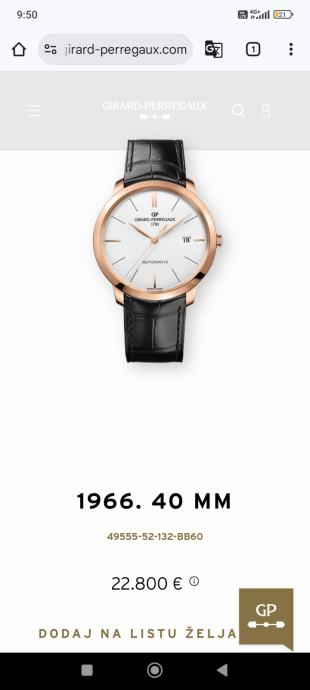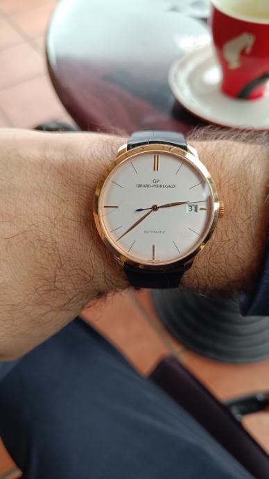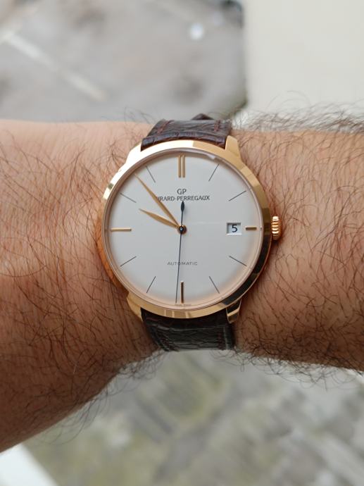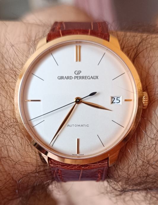 Prodajem girard perregaux 1966 18k rose gold odlično stanje 41mm mehanizam GP 4500 dolazi samo sat na Bodrinom aligatoru i18k trnskom kopčom