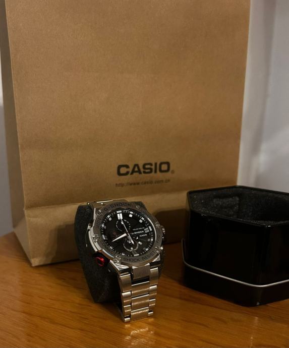 Prodajem Casio G-SHOCK GST-B100, potpuno nov s etiketom. Sat dolazi s metalnom narukvicom od nehrđajućeg čelika i crnim brojčanikom. Bluetooth povezivost omogućava sinkronizaciju sa smartphonom. Model kombinira prepoznatljivu G-SHOCK izdržljivost s modernim dizajnom pogodnim za svakodnevno nošenje. Uključena originalna metalna kutija.