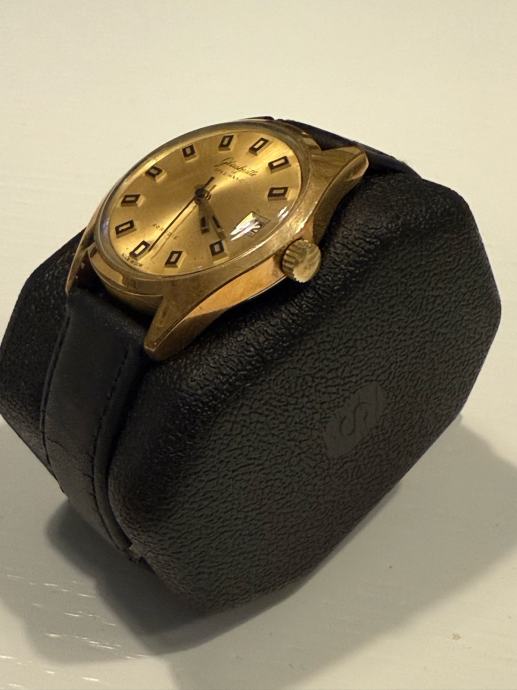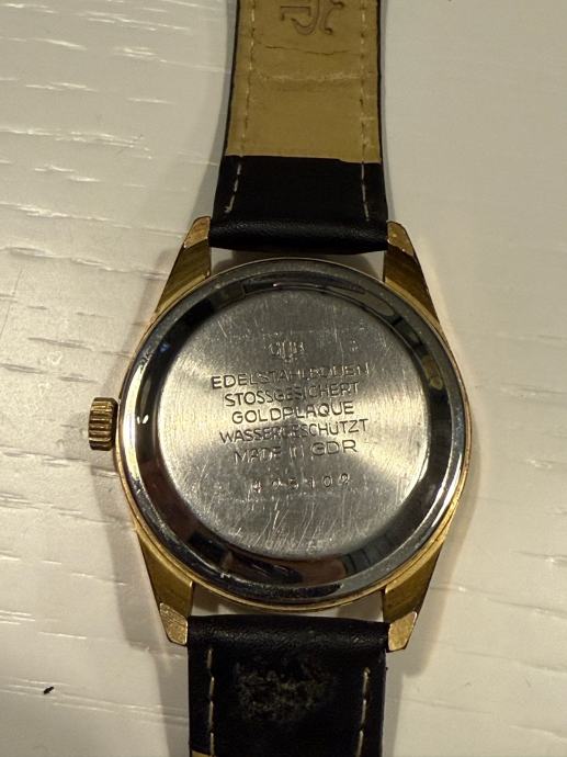 Prodajem dva rabljena muška sata marke GUB Glashutte u dobrom stanju. Jedan sat ima crni kožni remen dok drugi ima smeđi kožni remen, oba s elegantnim zlatnim brojčanikom. Ovi vintage satovi su savršen modni dodatak za svaku prigodu.
