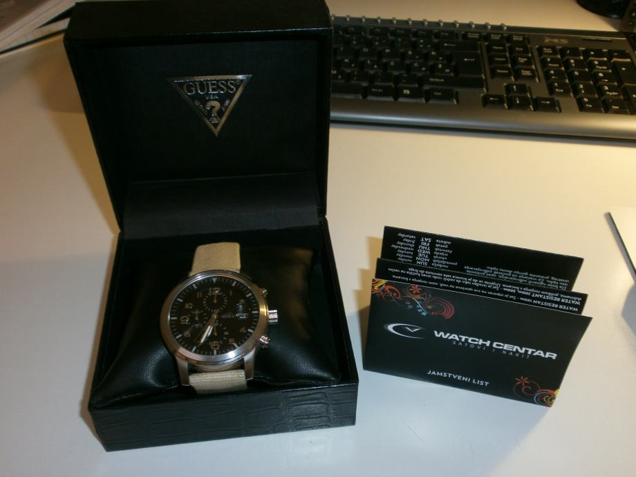 Guess muški sat, nikad nošen (još uvijek ima zaštitnu naljepnicu i kutiju), dobio sam ga na poklon prije skoro godinu dana.