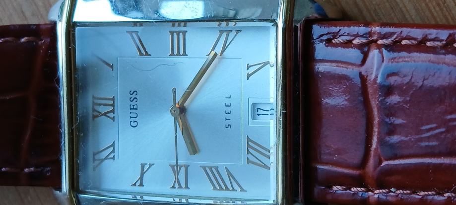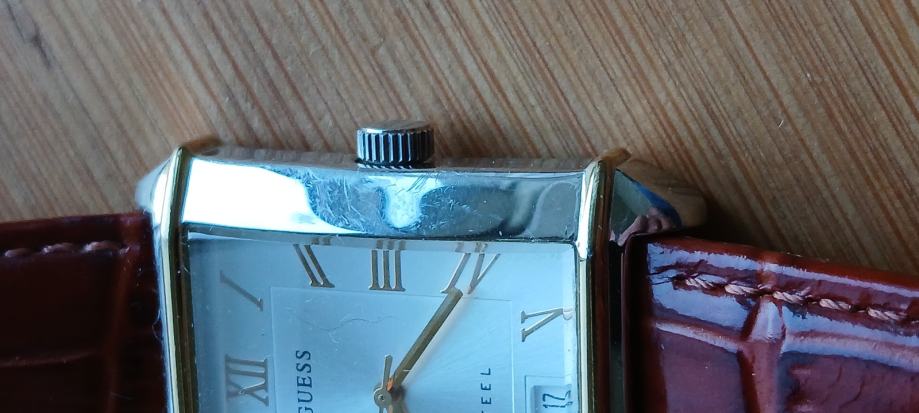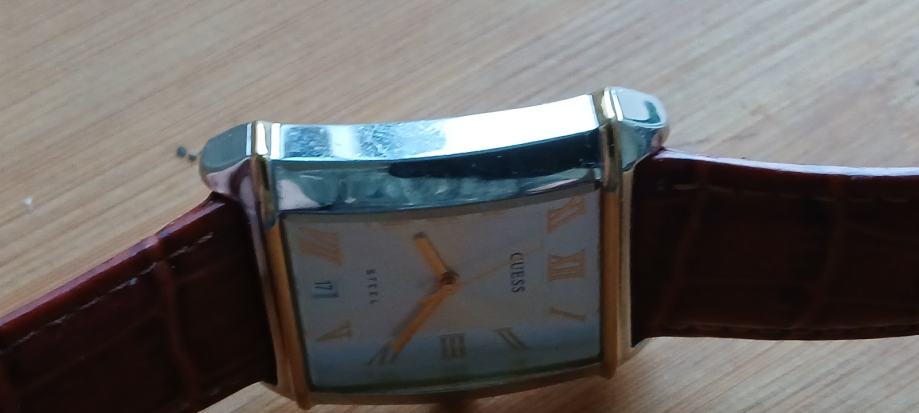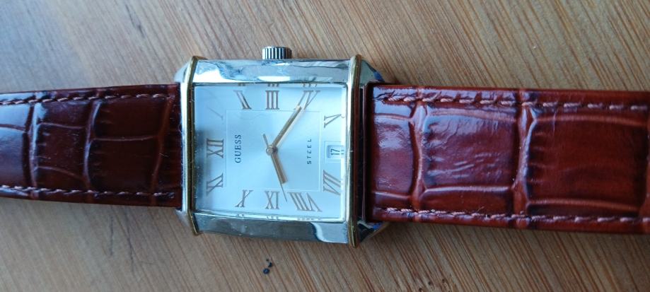 Guess G85496GG muški analog sat s datumom. Tocan i ispravan u čelik kučistu 32x30mm,nova baterija i kozni remen.
