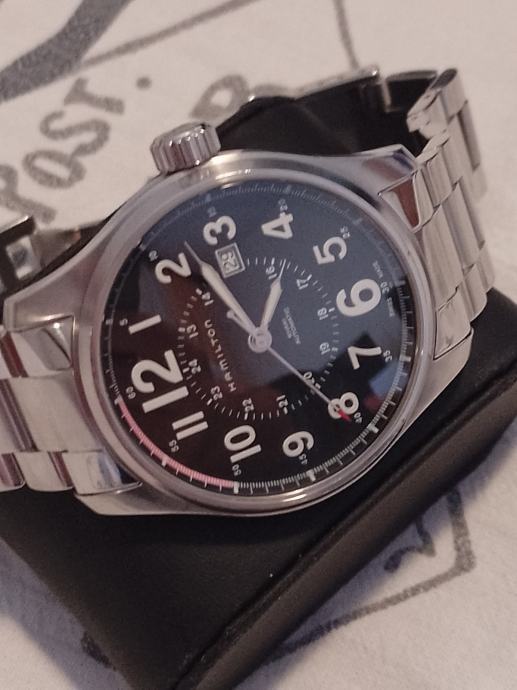 Radi se o Khaki Field izdanju, a ovo je model Officer, izrađivan u dosta nižoj nakladi - crveni vrh sekundare i diskretno crveno označeni indeksi u zoni 50-60 sekundi -Google.