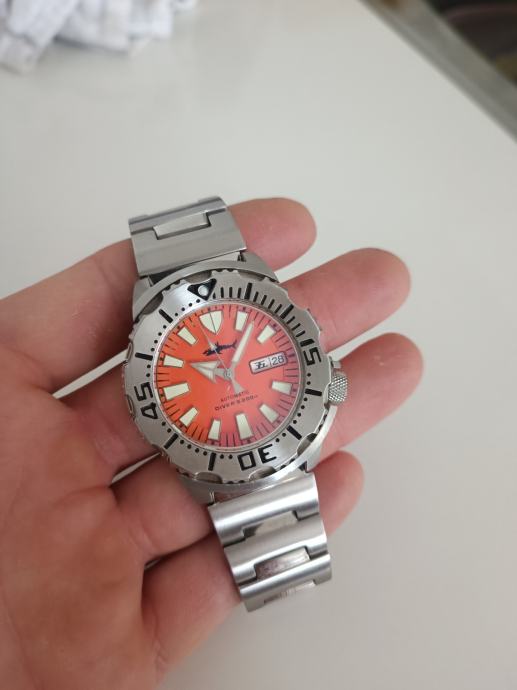 Na prodaju je Heimdallr Orange Monster V2. Nosen 6 mjeseci, prodajem jer sam uzeo seikov orange monster pa je ovo visak. Primopredaja Osijek i okolica, ali mogu slati postom na vas trosak. Bez zamijena.