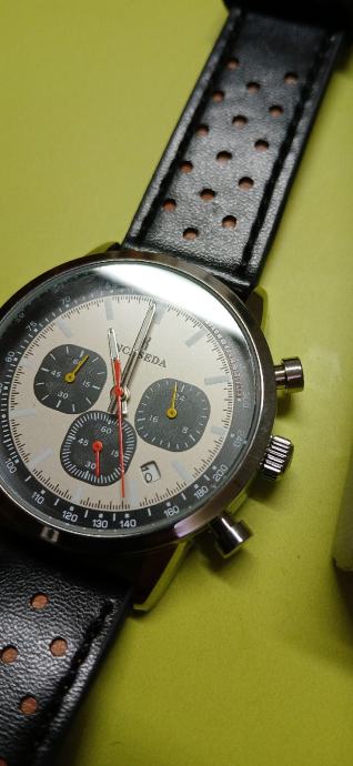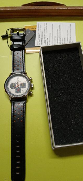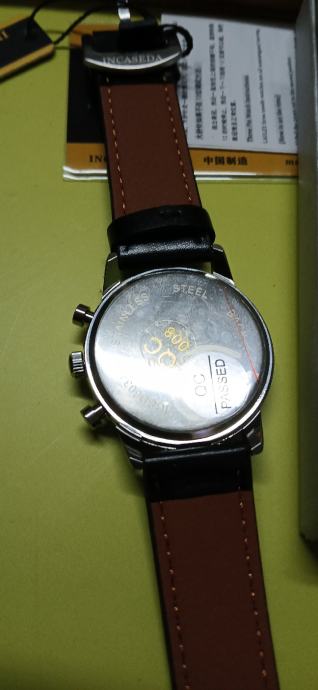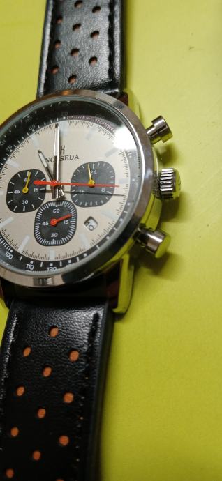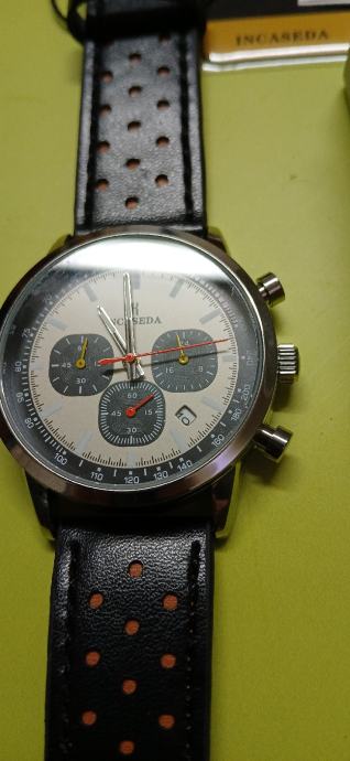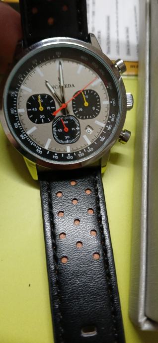 Muški quartz sat cronograph nov.Kutija papiri etiketa.potpuno ifunkcionalsn cronograph promjera 42mm.odlican kozni remen.šaljem hp,tisak,njuškalo