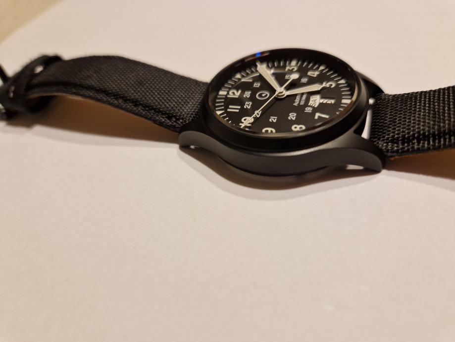 Nošen nekoliko puta, bez ikakvih oštečenja, radi savršeno, precizan, odličan lume...nema refleksije stakla kao na Hamiltonu...