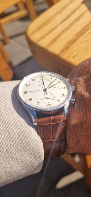 Prodajem IWC Portuguese Chronograph IW371401 s papirima i kutijom. Sat se ne nosi tako da je kao novi. Bez ogrebotine. Ima i originalan remen.