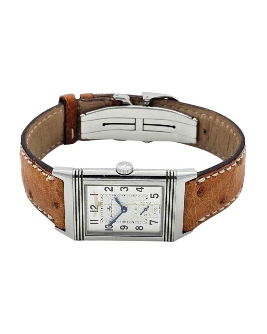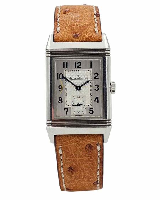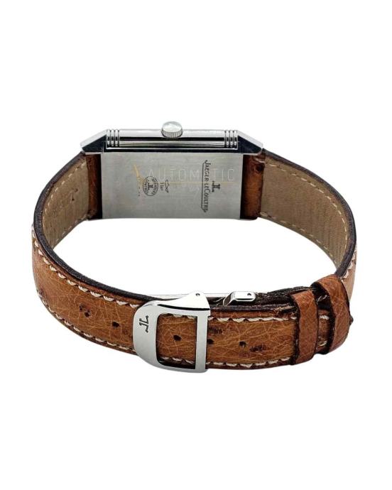 Ovaj časovnik dolazi sa crnom kožnom narukvicom, koja pojačava njegov sofisticirani karakter i čini ga idealnim izborom za formalne prilike, poslovne susrete, ali i svakodnevno nošenje. Kućište je izrađeno od visokokvalitetnog nerđajućeg čelika, dok ručni mehanizam Jaeger-LeCoultre manufakture obezbeđuje izuzetnu preciznost i dugotrajnu pouzdanost. Reverso Monoface je sat koji spaja bogatu istoriju i savremenu izradu. Njegov elegantan art-deco stil prepoznatljiv je među kolekcionarima i ljubiteljima horologije širom sveta. Bezvremenski dizajn, ručna završna obrada i pažljivo odabrani materijali čine ga jednim od najpoželjnijih modela iz Reverso linije.
