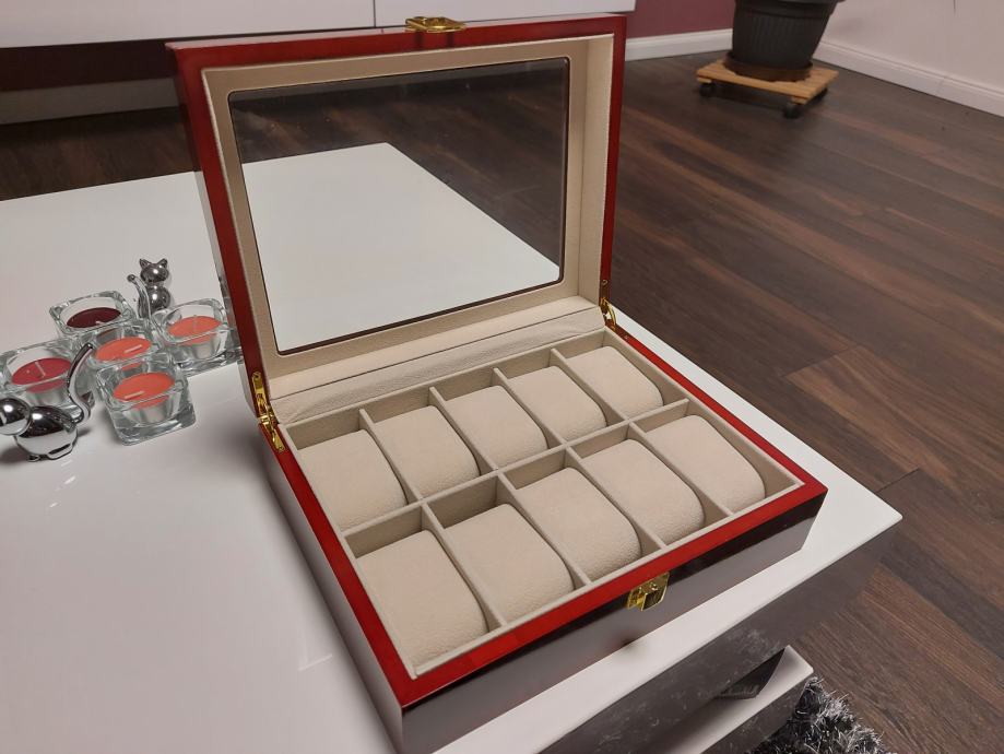 Kutija za satove nova nekoristena za 10 satova, dimenzije 27x21x10,50 cijena 50 eura