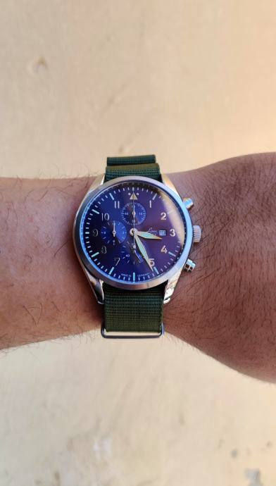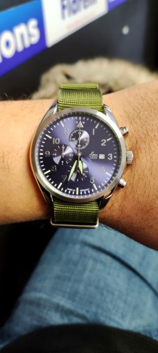 Made in Germany, 42mm promjer, 20mm lugovi, myiota kvarc, dolazi na originalnom laco nato remenu, a uz njega dajem i kožni aviator remen.