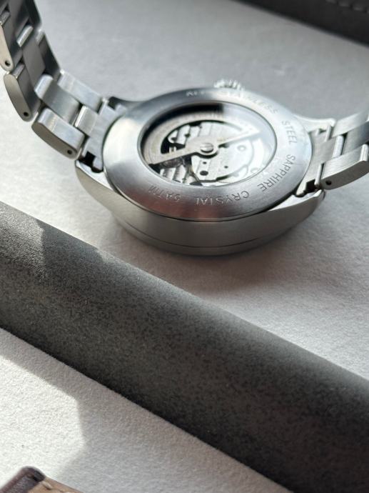 Mehanizam: Automatic Laco 21 (baza Miyota 821A ukrašena, tvornički obrađen rotor, ručno navijanje, hack funkcija)
