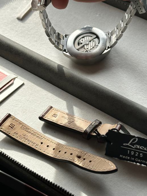 Prodajem Flieger Laco Augsburg automatic s odličnom originalnom metalnom narukvicom i kožnim remenom. Sat je kao nov u izvrsnom stanju bez ikakvih oštećenja na kućištu, safirnom staklu na obje strane, ciferu itd.