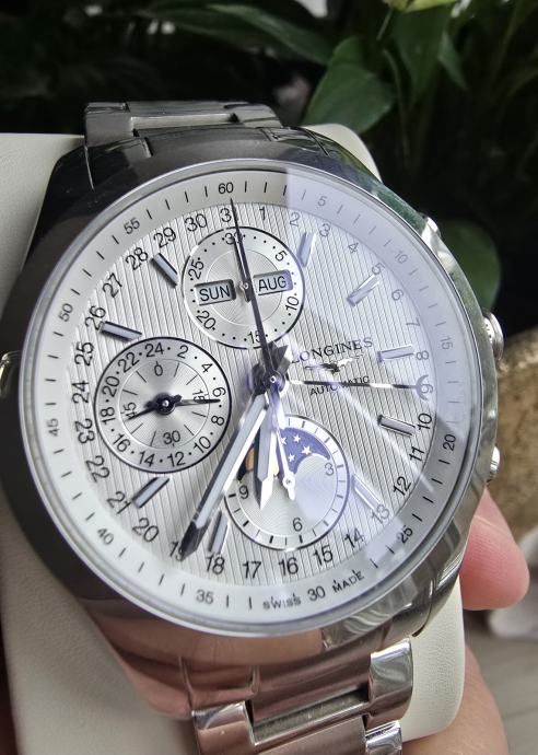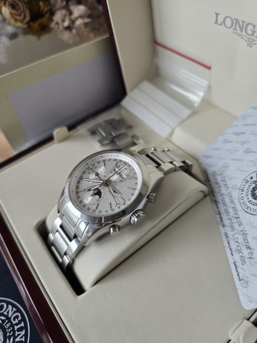 Prodajem vrhunski švicarski sat Longines Conquest Classic Chronograph Moonphase, referenca L2.798.4.72.6 – kompletno pakiranje i dokumentacija: