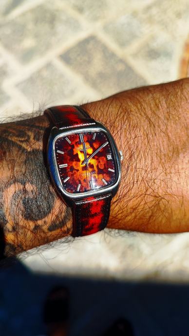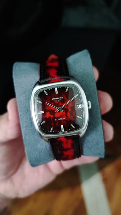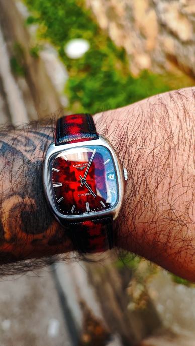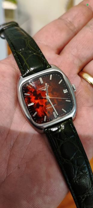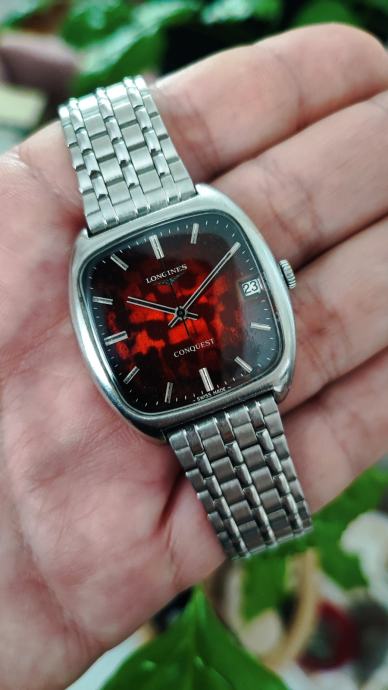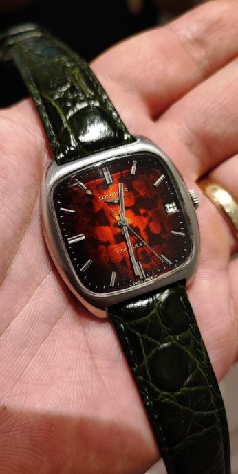 Prodajem iznimno rijedak primjerak Longines Conquest iz 70tih sa "vatrenim" brojčanikom koji se mijenja obzirom na izloženost svjetlu. Sat je u potpunosti originalan, radi se o jako limitiranoj verziji za Poljsko tržište pod nazivom "piekielnik", i ovaj sat gotovo nikada nije u prodaji na oglasima. Mehanički navijač, 34mm, potpuno originalno nepolirano izvrsno estetsko stanje. Sat je prošao kompletan servis ( osim poliranja ) 23.10.2024. i u savršenom je radnom stanju. Dolazi u svojoj originalnoj kutiji sa čak 3 narukvice ( metalna nsa vintage, crno/crvena custom kožna i tamno zelena kožna sa originalnom longines kopčom )