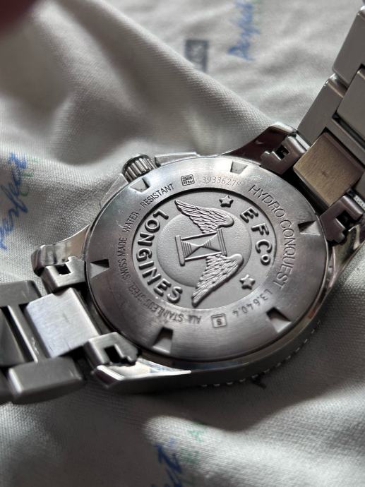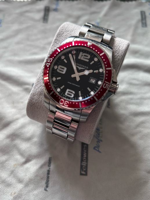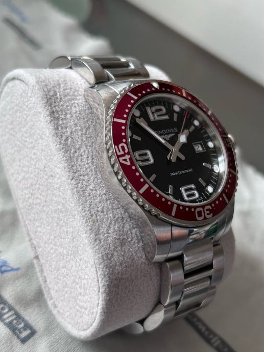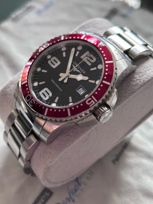 Originalni Longines HydroConquest, quartz ETA mehanizam (plava ETA, drugi najbolji mehanizam iz te generacije). Vodootporan 200m, sve original. Rijetki crveni bezel. Vidljivi mali znakovi korištenja. Promjer sata je 39mm. Full set - kutija, papiri, originalna narukvica.