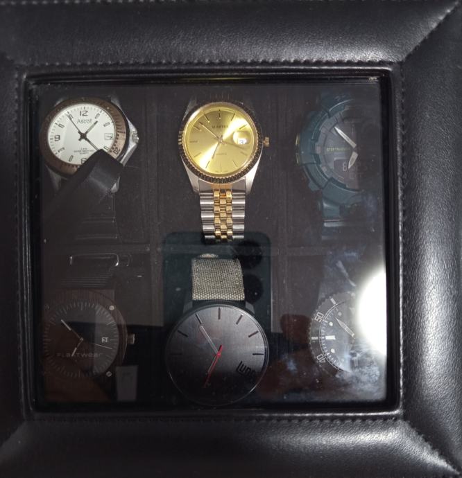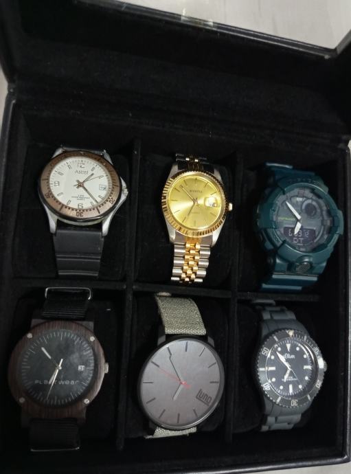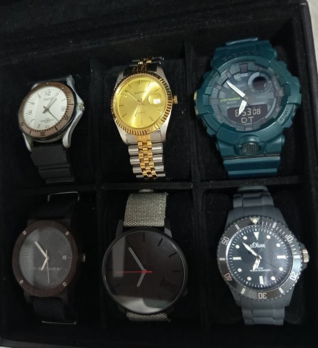 Lot rabljenih satova. Svi satovi rade. Casio G Shock ima novu bateriju. Ima bluetooth, steptracker i svašta nešto, aplikacijom se povezuje s mobitelom. Ima tragova nošenja. Najiritantnije jednu točku na staklu od taljenja ili nečeg. Inače je ok. Ne smeta. Vidi se sve ok. Fossil je izgreban, ali ispravan. Trebalo bi staklo ispolirat. Inače je ok. Ascot ima novi remen, staklo je super, ali kućište je standardno ofucano. Ostali su stvarno u super stanju, a radi se o Lunowear satu, Plantwear satu i s.Oliver satu. Svi imaju nove baterije. Cijena je za sve i s kutijom.