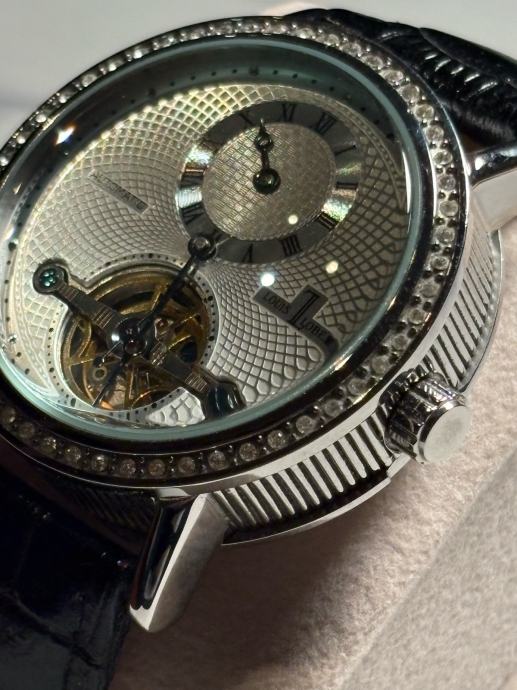 Automatski hacking (ima i ručno navijanje) Miyota mehanizam Louis Lobel, vodootporan 50m, original kožna narukvica, malo nošen, nehrđajući čelik, 53 Swarovski kamena po obodu kučišta. Odlično stanje, rijedak model. Prvi vlasnik, satovi iz osobne kolekcije. Svi satovi su iz moje kolekcije, i svima sam prvi ili drugi vlasnik. Popust za kupnju više satova. Zamjene samo ako uzmete 2 ili više mojih satova za vaš skuplji, ili nudite vaš sat i doplatu.