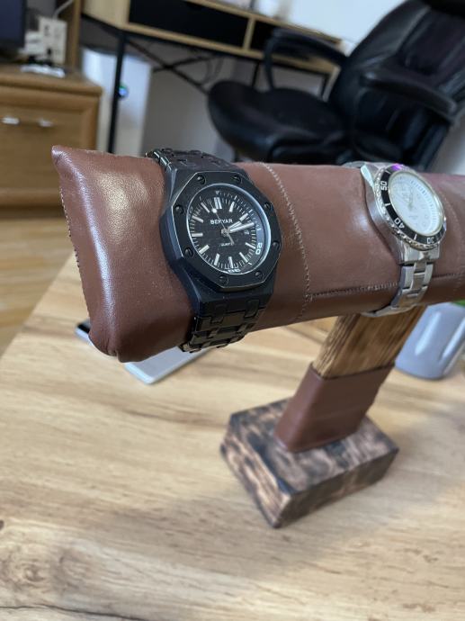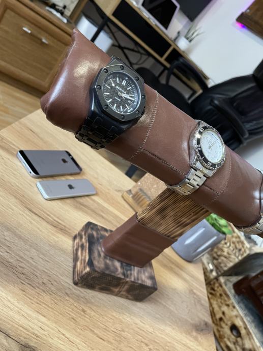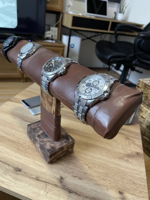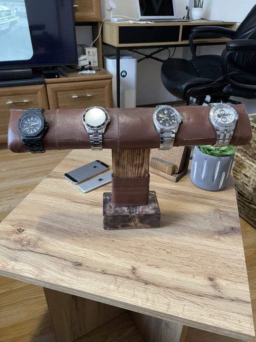 Prodajem ručno rađeni stalak za satove. Stane 6 satova. Presvučeno pravom kožom! Cijena 60e.