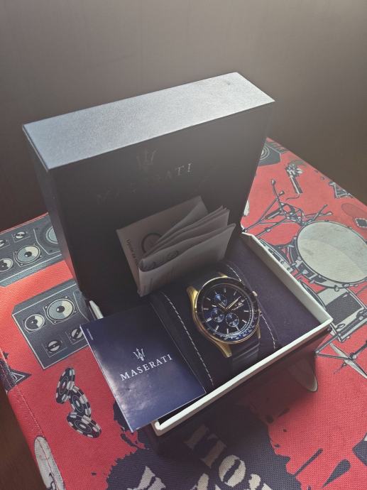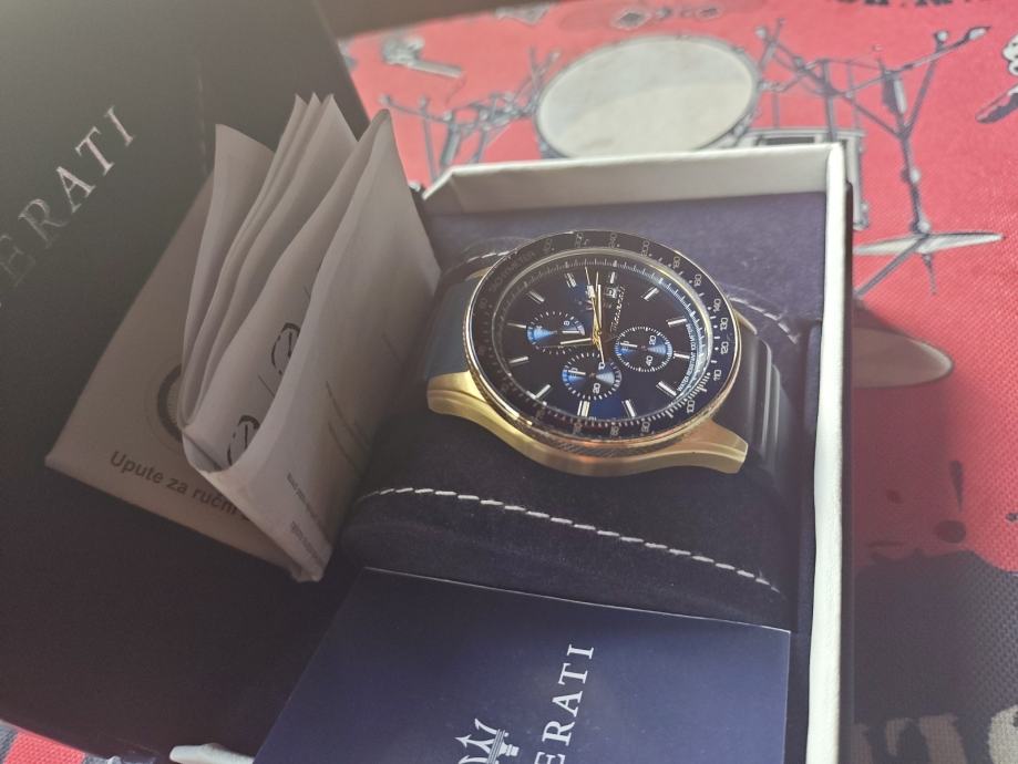 Prodajem navedeni Maserati sat,ne nosi se pa se iz tog razloga i prodaje,jako jako malo nosen,pretezito stoji u svojoj kutiji,kupljen 3.3.2023 u Osijeku.