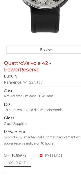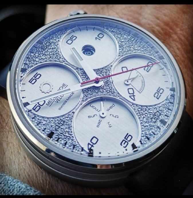 Sat je kao nov, stavljen na ruku nekoliko puta u posebnim prilikama, kombinacija titana, 18-karat bijelog zlata i dijamanata, cijena novog 9900€, moguca zamjena