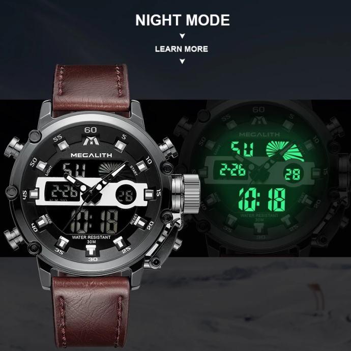 MEGALITH muški vojni sat, original, kožni remen, vodootporan