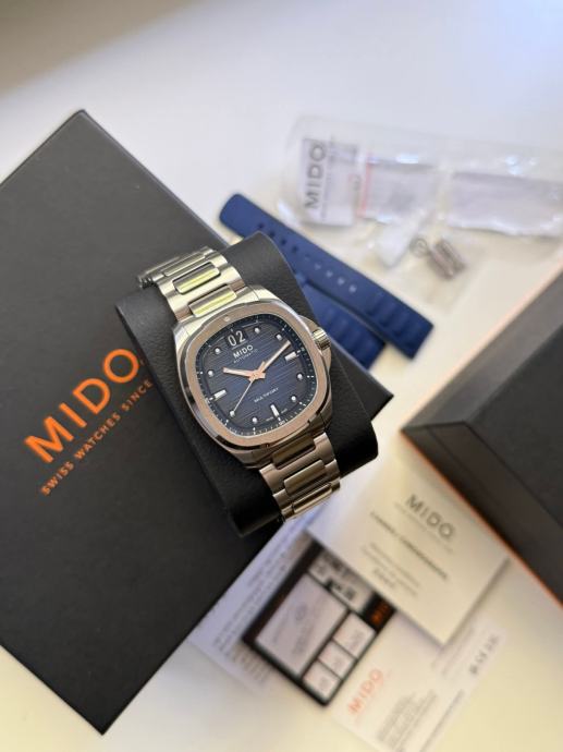 Sat dolazi u full setu, kupljen je 5/2025. i u stanju je kao nov. Sat dolazi na gumenom orginal Mido remenu (u odličnom stanju), te dodatno ide novi nekorišteni orginal metalni Mido remen (vrijedan cca 150-160€)