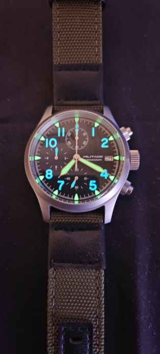 Dolazi na original NATO remenu i jos 4 dodatma remena, original kutija i kartica(nepopunjena).