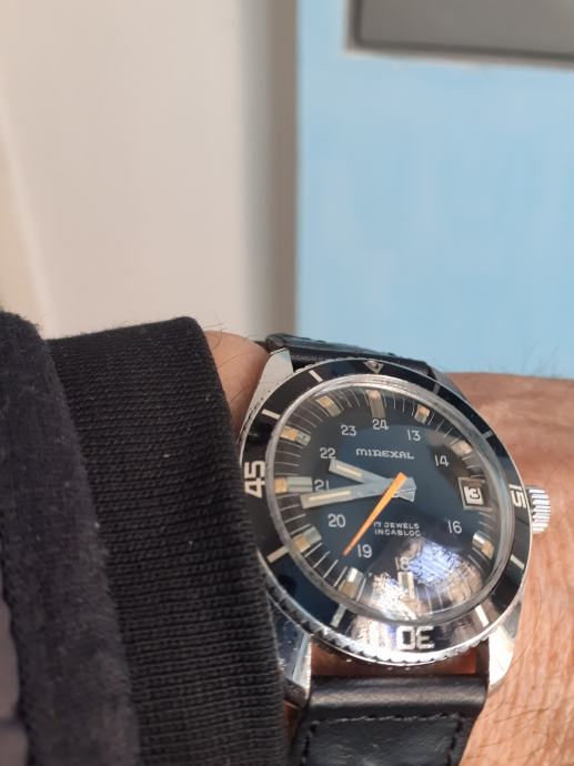 Jako lijep i zanimljiv sat sa prekrasnim crnim ciferom i ronilačkom lunetom.dijametar 37.mm.navijač stanje jako uredno.možete pogledati i ostale moje oglase.