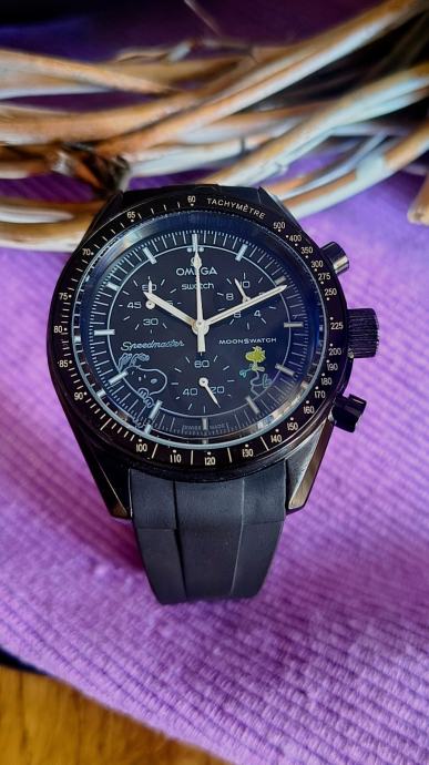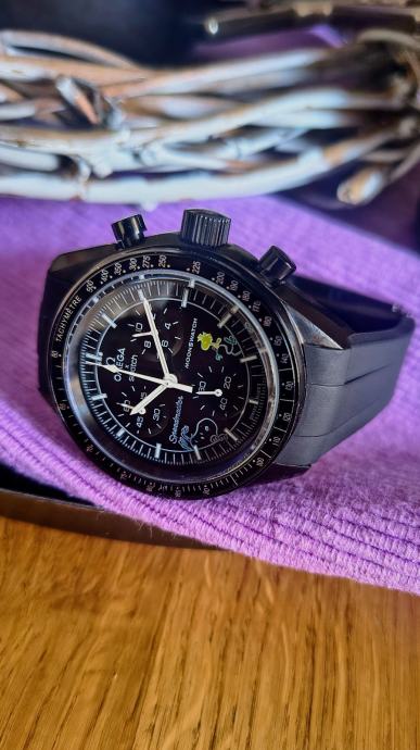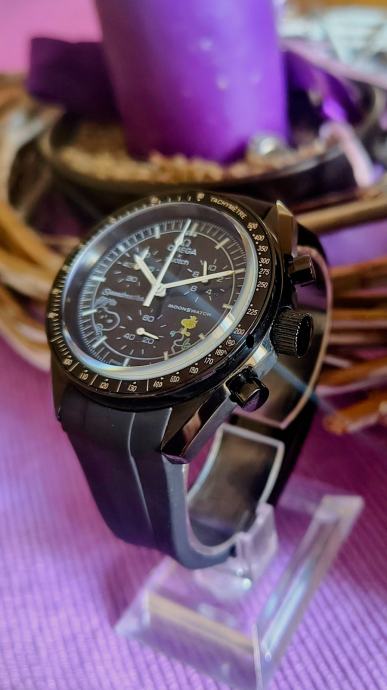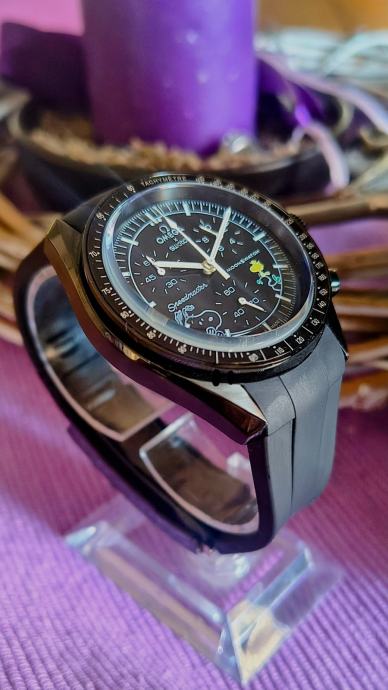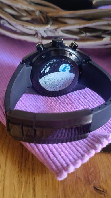 sat je modificiran, preseljen mehanizam s ciferom u metalno kućište. od dječjeg sata napravljen ozbiljan MOONSWATCH Speedmaster Omega&Swatch Mod