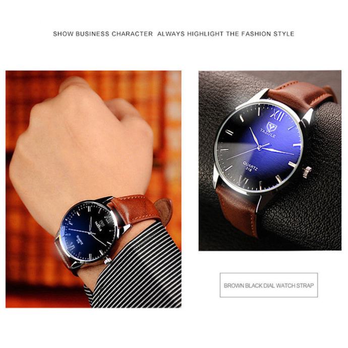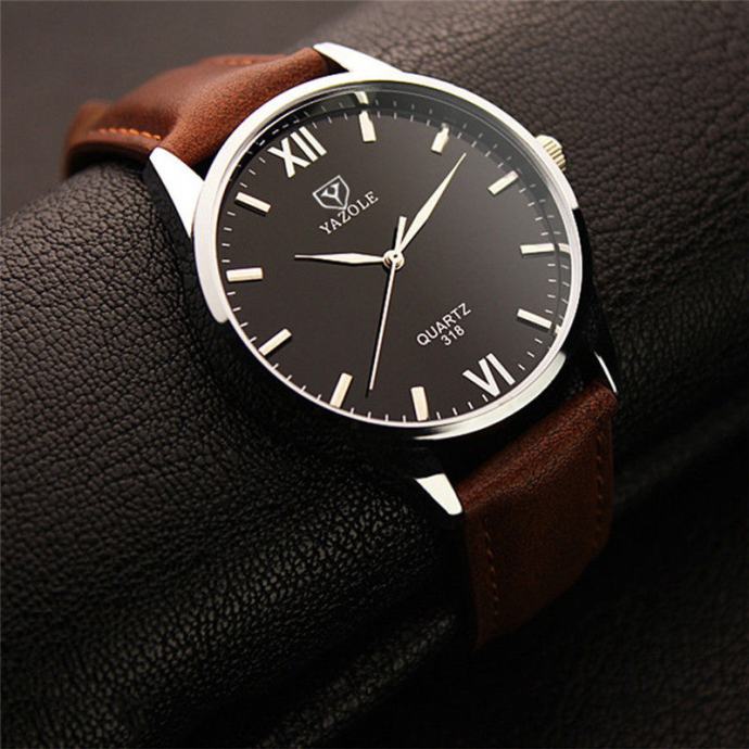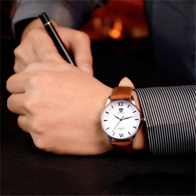 NOVI analogni muški sat, od nehrđajučeg čelika s kožnom smeđom narukvicom, kao na slici!