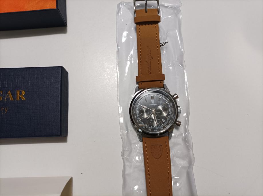 Muški sat poedagar chronograph, sve kazaljke rade, kožni remen bez tragova korištenja nosen jednom, prodajem