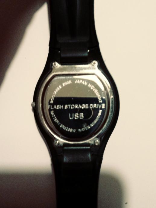 Muški sat s USB memorijom 64MB, nekorišten, zbog dugog stajanja internu bateriju potrebno zamijeniti, USB memorija neovisna i trajna, na staklu originalna folija, izvrstan za korisnike koji žele ključne dokumente uzeti/ponesti sa sobom, rijetki primjerak