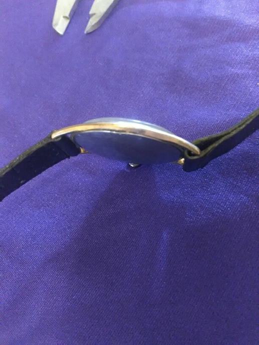 Sat je ispravan i fino i precizno radi u kućištu fi 35 mm. Tanak sat (7mm)sa predivnim isaćuvanim mehanizmom nažalost sa lošim ciferom. Normalno se navija na krunici, jedino kad se korigira vrijeme mora se krunica držat prema van.