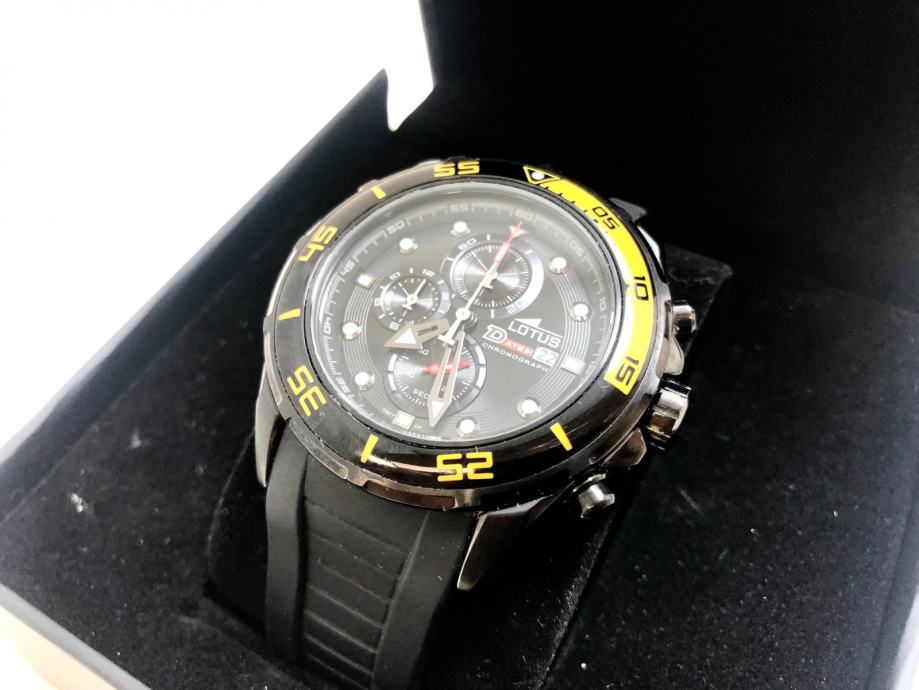Prodajemo rabljeni sat Lotus Chronograph 15678. Sat dolazi u originalnoj kutiji, s računom i jamstvom, testiran je i ispravan.