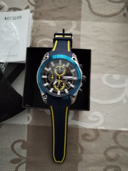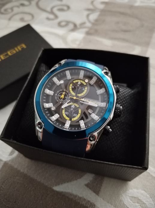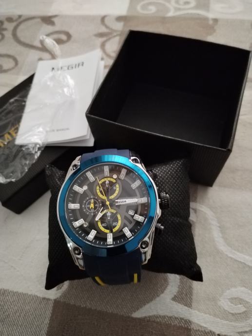 Muški sat Megir model 2144 Chrono luminos wr silicon narukvica Japan mehanizam 43mm papiri kutija