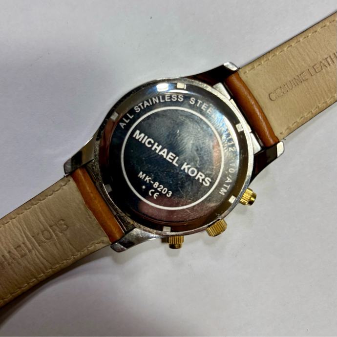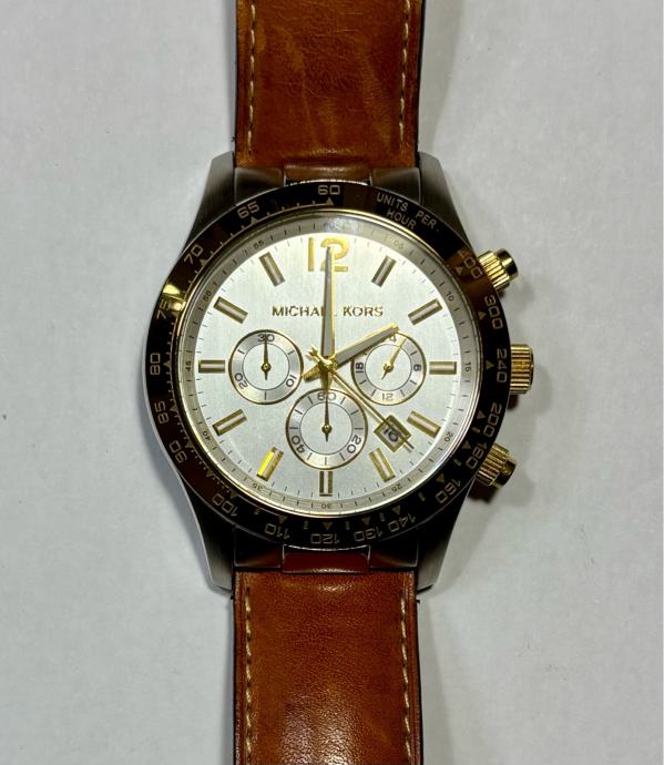 Prodajem rabljeni muški sat Michael Kors, model MK-8203, Quartz mehanizam, promjer 45 mm, debljina 13 mm, vodootporan do 30m, sa kronografom, datumom…