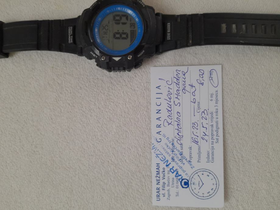 Prodajem muški sat Steve Madden, nije nošen. Zbog stajanja promijenjena je baterija.
