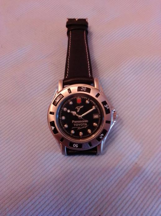 Sat je ispravan u originalnom stanju u kučištu fi 39 mm , sa Japanskim mehanizmom Miyota c.o. 2115, bez ikakvih oštećenja sa lunetom i datumom posvećen formuli1 i prvoj suradnji Toyote i Panasonica.Šaljem poštom uplatom na moj tekući račun+ troškovi poštarine.