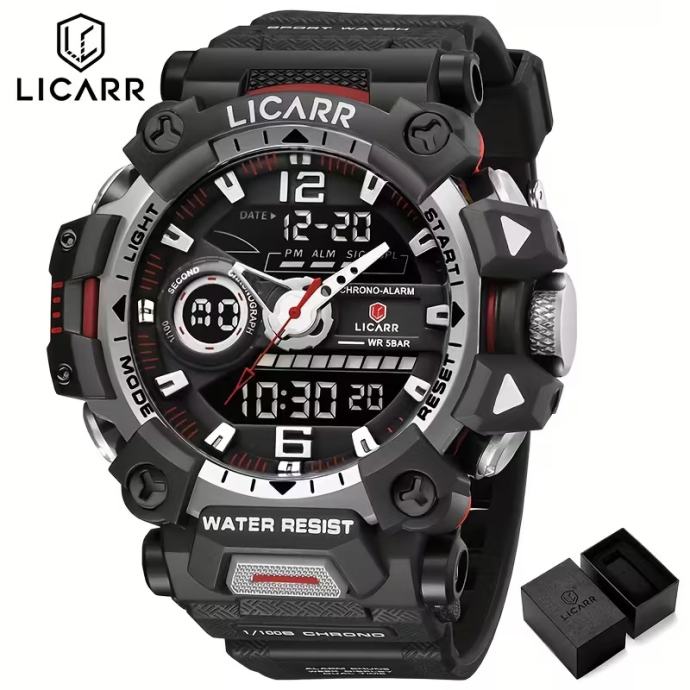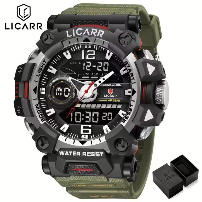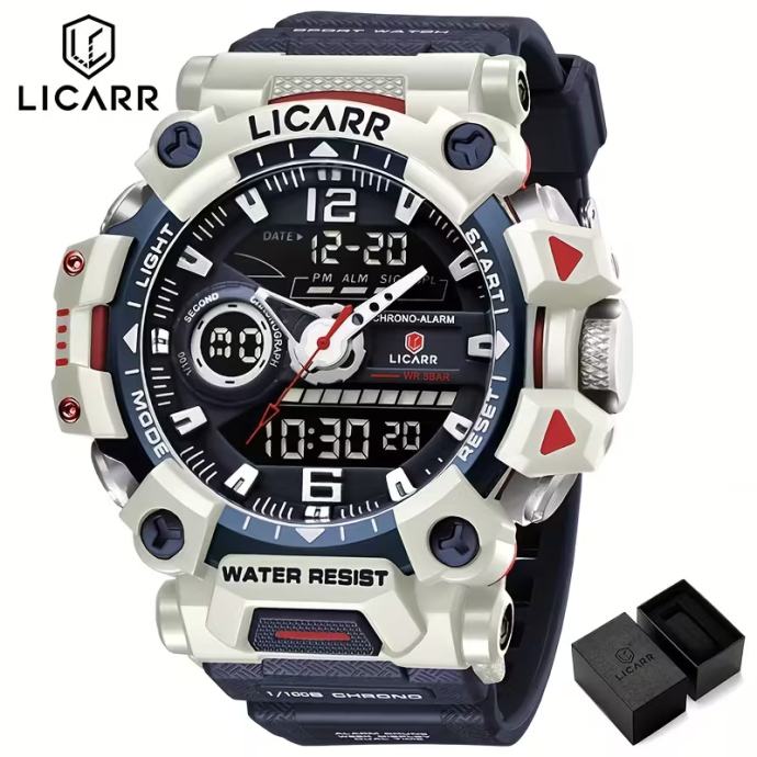 Muški sportski sat, vodootporni budilica, svjetlosni analogni digitalni LICARR muški satovi, dvostruki zaslon, kvarcni ručni satovi, najbolji za Božić, savršeni za Dan zahvalnosti