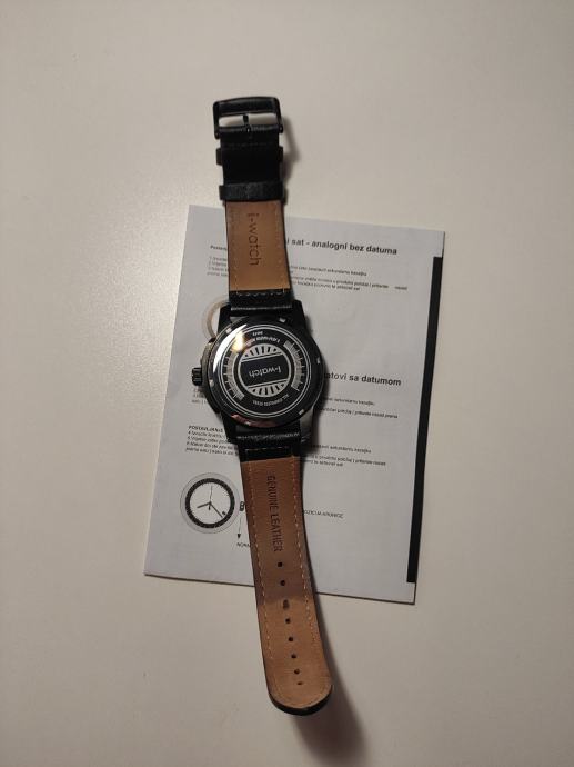 Prodaje se muški i-watch ručni sat crne boje. Remen je od prave kože, a sat ima i pokazivač datuma. Nošen je svega nekoliko puta.