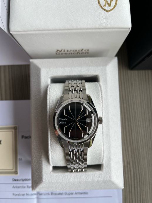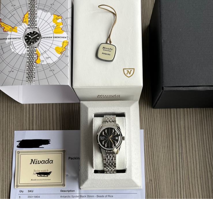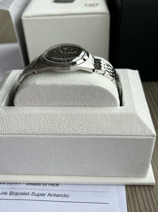 Nivada Grenchen Antarctic Spider 35mm na beads of rice narukvica, ručno navijanje, crni brojčanik. Kupljeno prošlog ljeta i još uvijek pod garancijom.