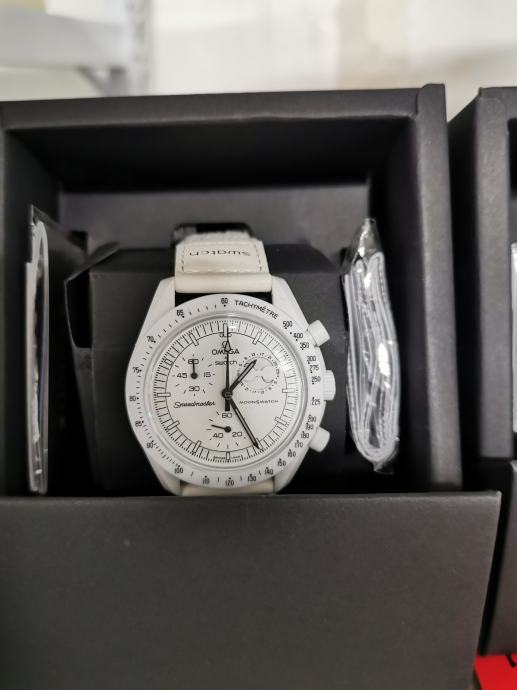 Prodajem Omega x Swatch MoonSwatch sat, nov s etiketom, u originalnom pakiranju sa svim dodacima. Radi se o modelu Speedmaster u bijeloj boji, s bijelim remenom i bijelim brojčanikom. Sat dolazi kompletno opremljen, točno onako kako je stigao iz trgovine.