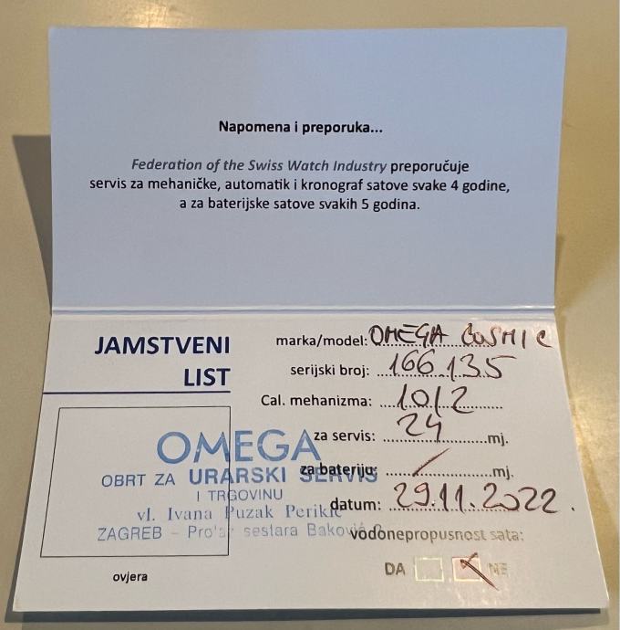 Servisiran kod Puzaka, ovlastenog Omega urara u Zagrebu.