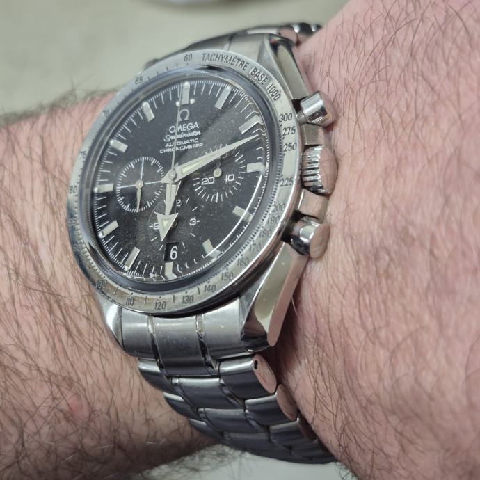 Prodajem kultni sat Omega Speedmaster u Automatic Chronometer izvedbi. Idealan spoj legendarne estetike "Moonwatcha" i praktičnosti automatskog mehanizma koji se sam navija nošenjem.